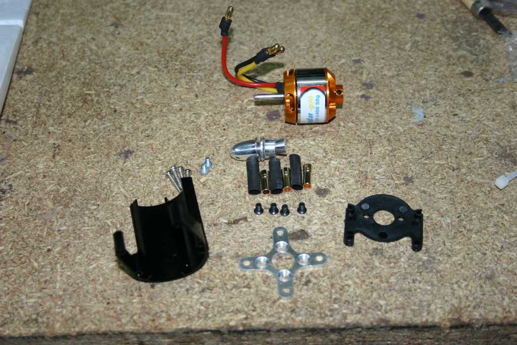 Es erfolgt ein Probelauf des Motors um die Drehrichtung zu testen. Läuft der Motor falsch herum, müssen zwei der 3 Zuleitungen vertauscht werden. Beim Probelauf stellt sich eine Unwucht an einem der mitgelieferten Motoren heraus. Das offene Gehäuse der Motorgondeln wirkt dabei als Resonanzraum und das Motorgeräusch wird dabei bei bestimmten Drehzahlen unerträglich. Weil ich mit eingebautem Mikrofon fliegen will, ist das untragbar, der Motor wird durch einen anderen ausgetauscht. |