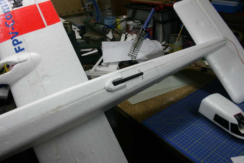 AV Antenne. Ich schneide was aus dem Material was zu Anfang von den Motorgondeln